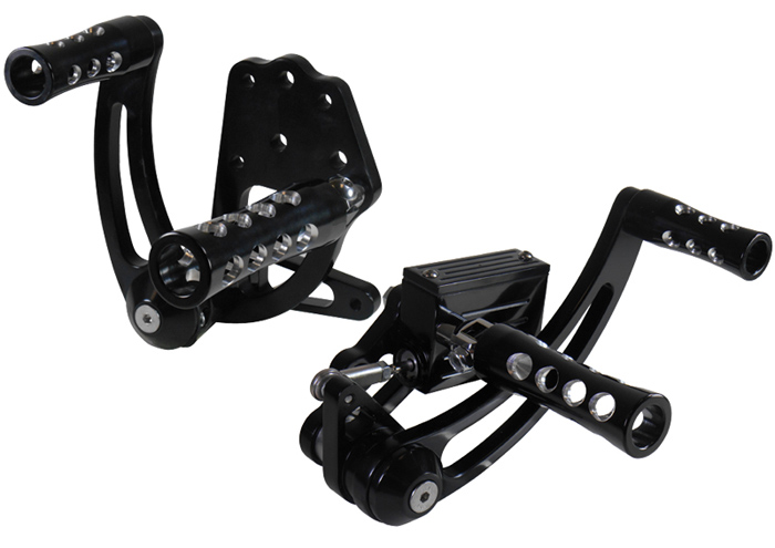 V-FACTORBlack Anodized Billet Forward Control Kit with Concave Peg StyleFits Big Twin 4 speed 1958/1986 & Softail 1986/1999