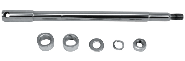 Available as a complete kit with chrome spacer(s), washers and axle nut or just the axle by itself.