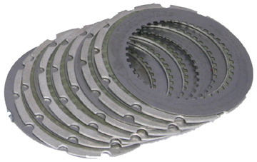 Normally the friction plates are splined to the inner clutch hub, but the quiet clutch friction plates incorporate a round dog drive to the outer clutch basket.
